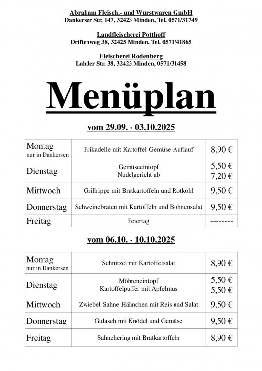 Unsere Renner sind seit Jahren: Abrahams Frikadellen, Potthoff`s Currywurst oder Rodenberg´s Fleischsalat.